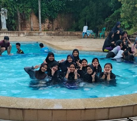2. ini adalah dokumentasi saya dan teman kelas saya seusdah megambil nilai renang